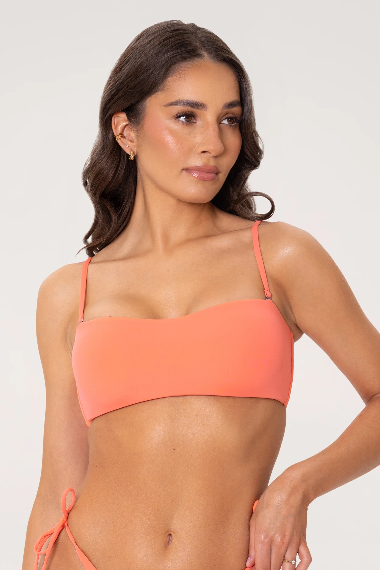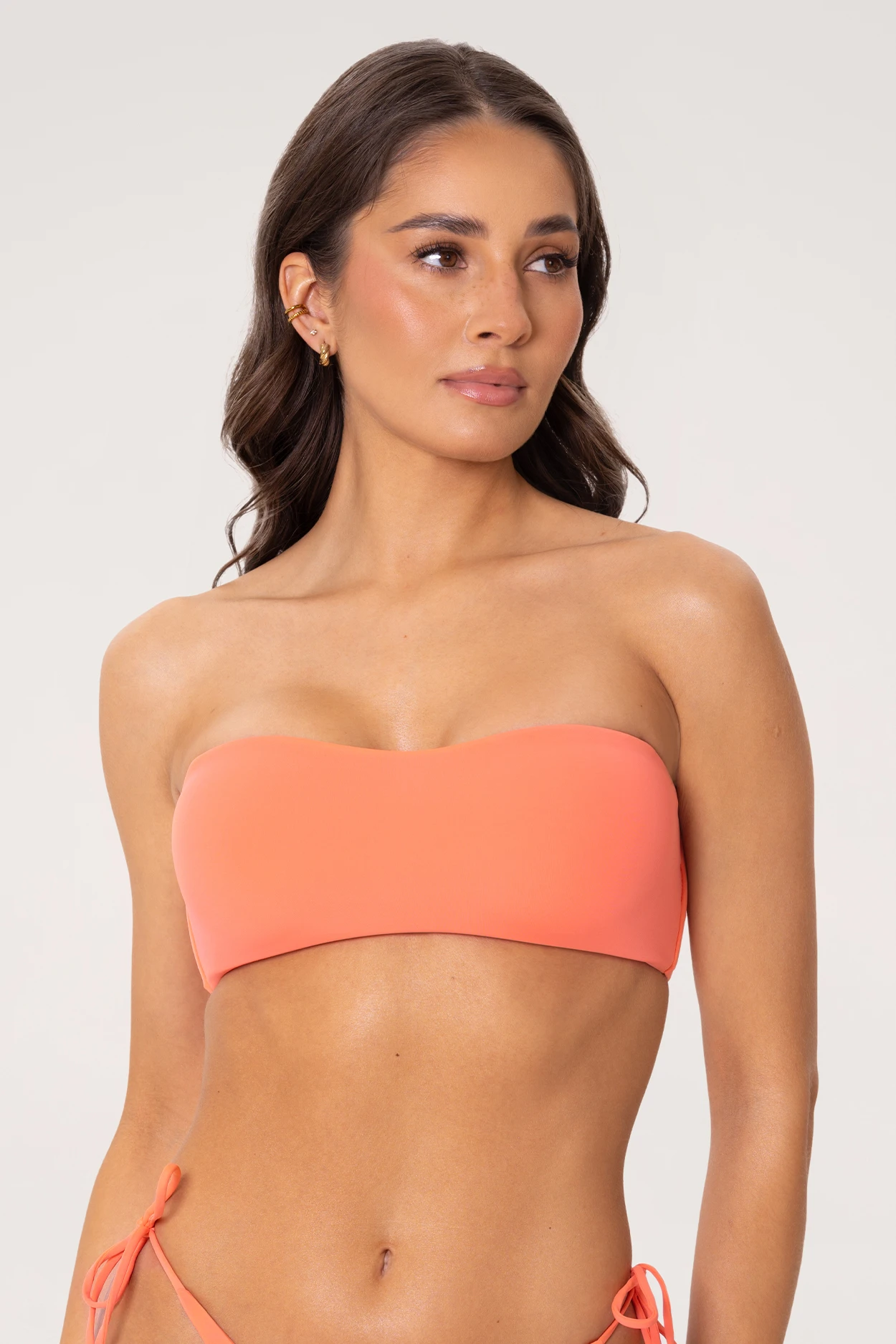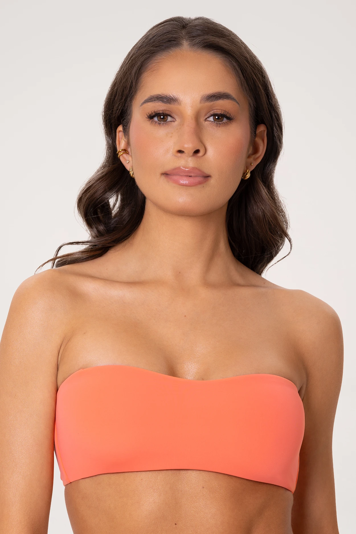 - Top bikin, který spojuje minimalistickou formu bandeau s jemným tvarováním a pohodlím při nošení.
