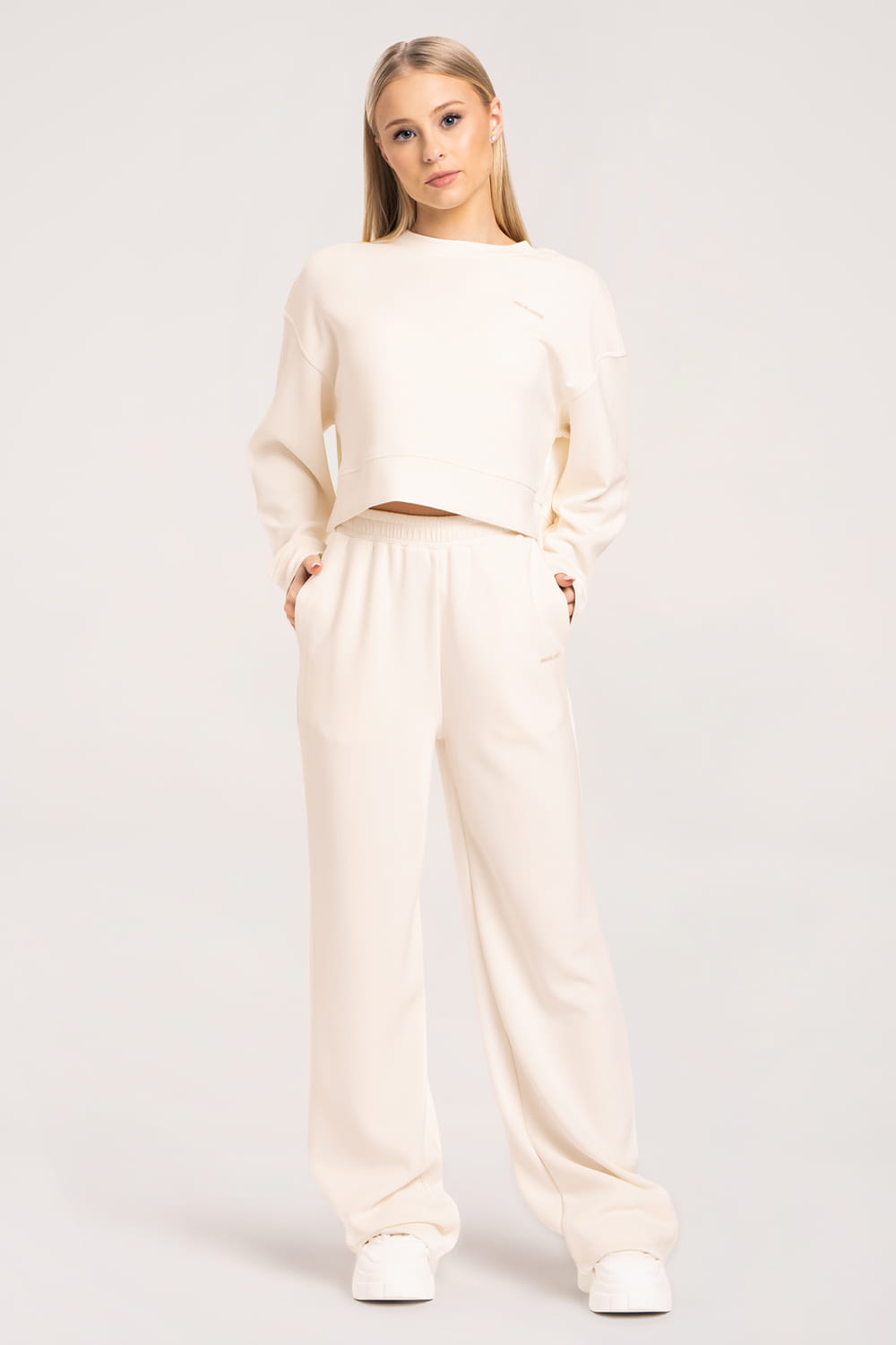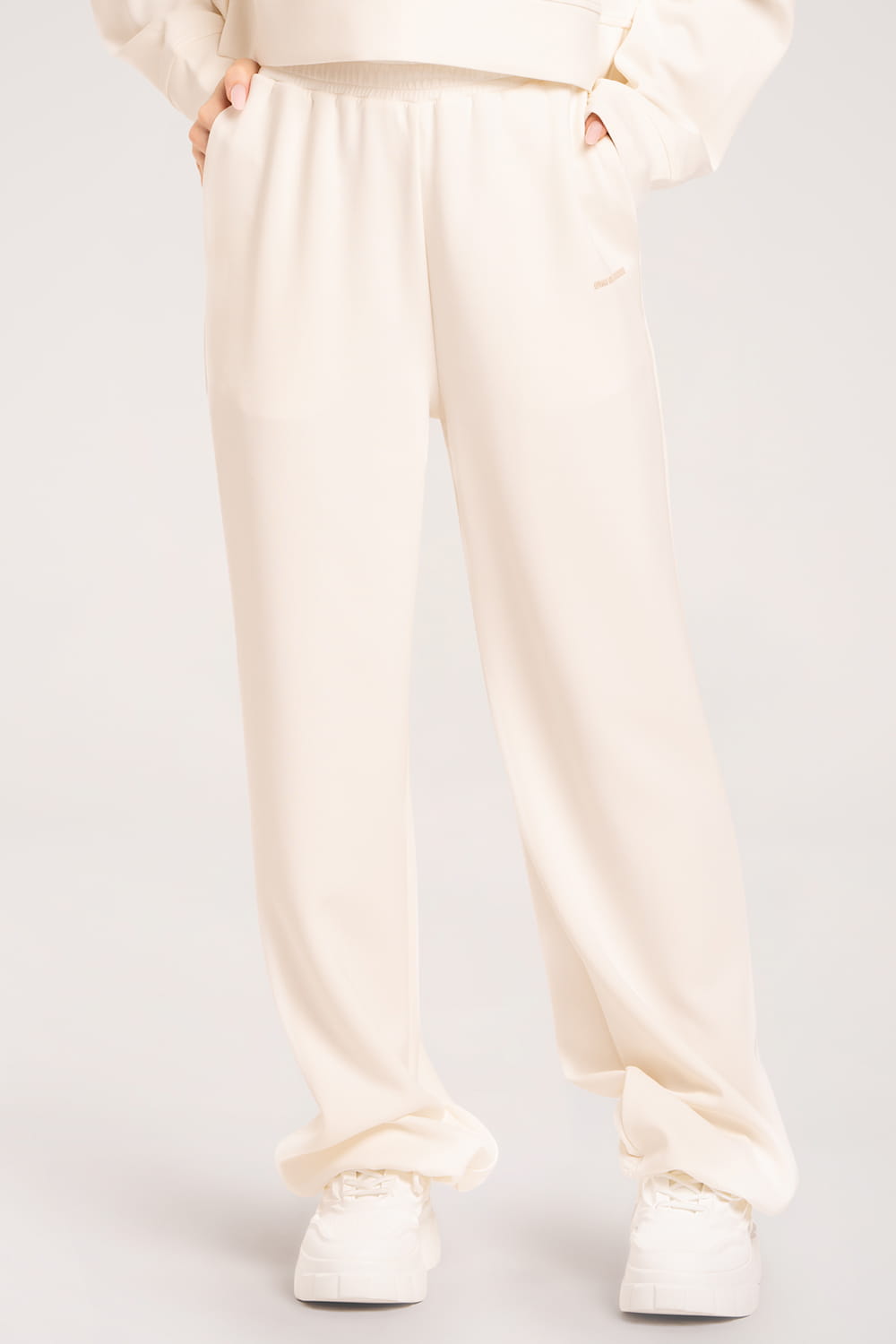 Kalhoty širokého střihu s praktickým stahovacím lemem jsou kombinací stylu a komfortu. Ušity z výjimečně měkkého a prodyšného prémiového materiálu s přídavkem modalu – lehké, příjemné na kůži a odolné proti žmolkování. Elastický pas s možností další regulace zajišťuje dokonalé přizpůsobení každé postavě. Pohodlné a praktické na každý den.