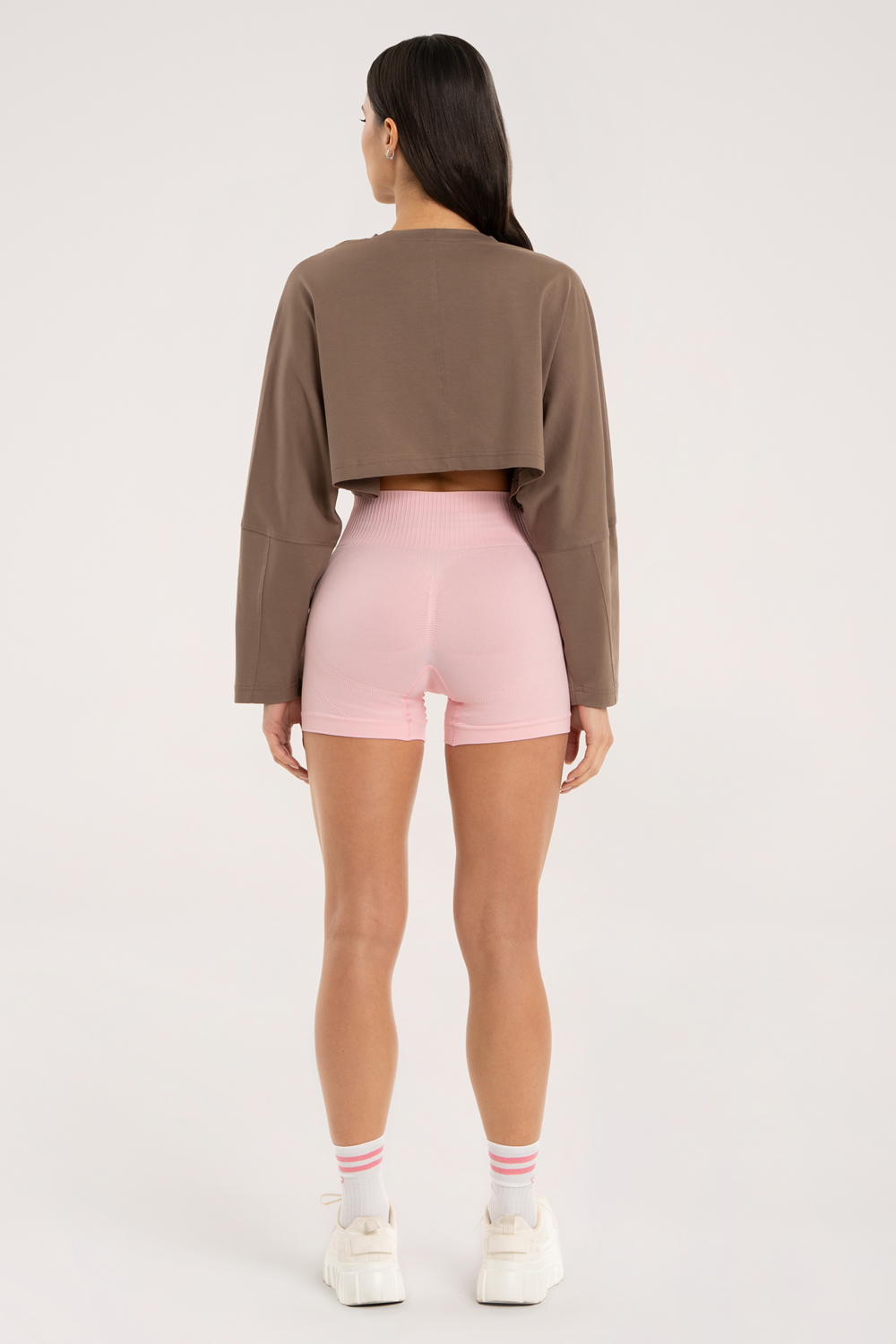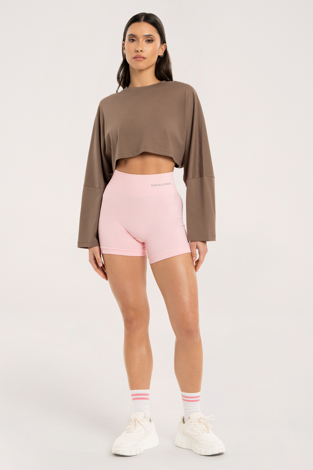 - Jemné logo Gym Glamour na rukávu, dodávající minimalistický vzhled