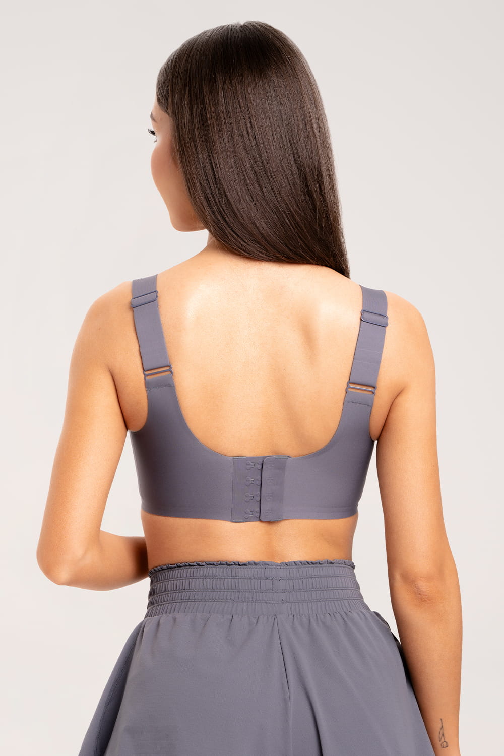 Sportovní podprsenka určená pro intenzivní trénink a náročné aktivity. Poskytuje pevnou oporu poprsí, ideální pro dynamické pohyby. Nastavitelná ramínka a čtyřstupňové zapínání na zádech umožňují přesné přizpůsobení. Vnitřní tvarované košíčky zaručují pohodlí a pěkný tvar poprsí. Vzhled doplňuje decentní průhledné logo s jemným leskem.
