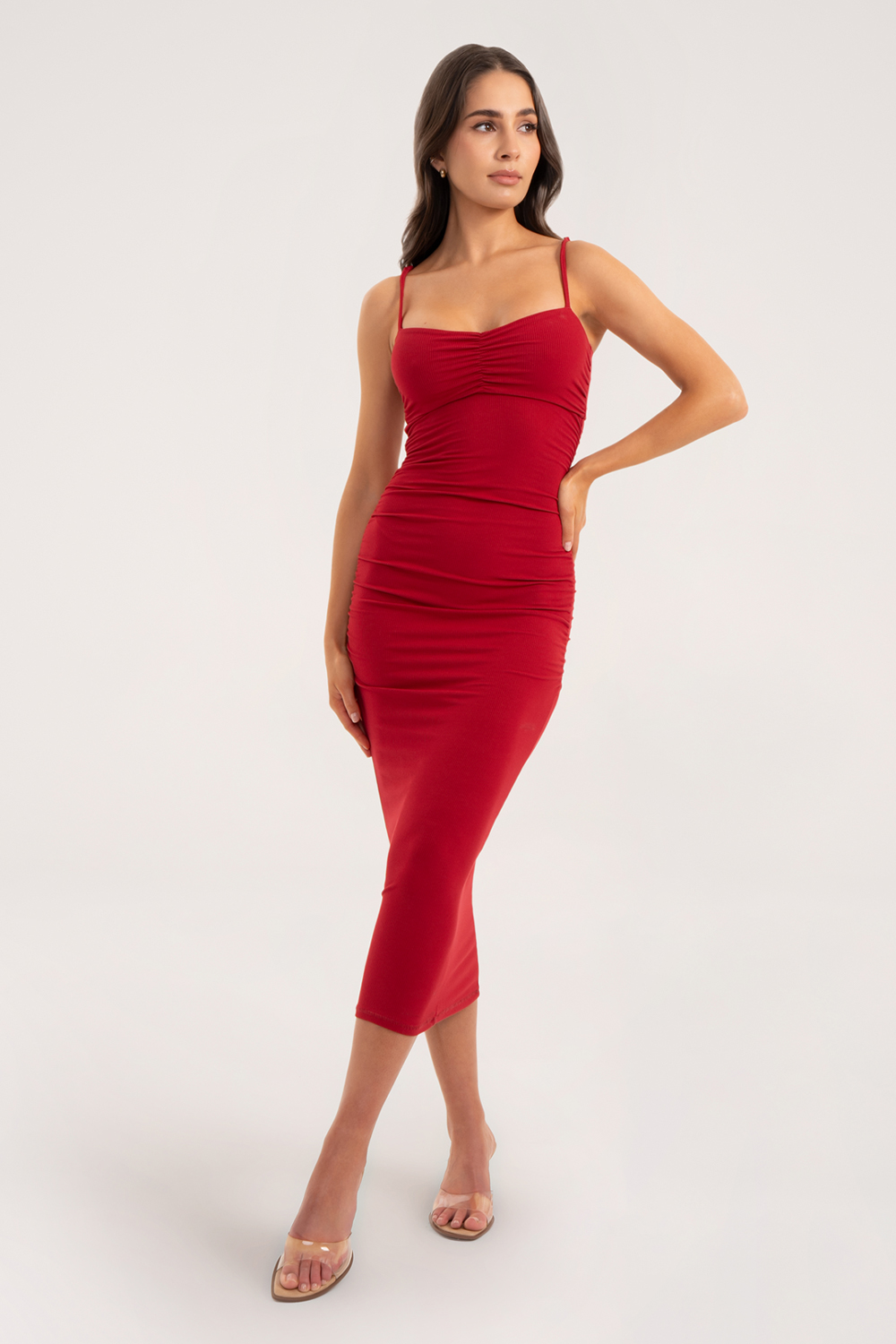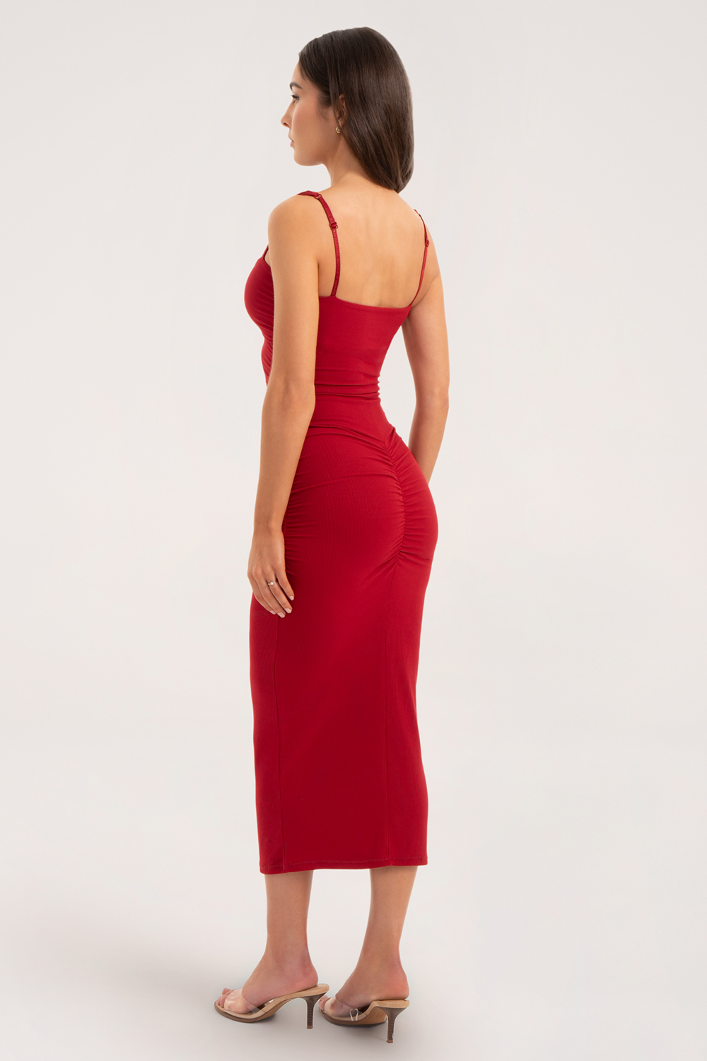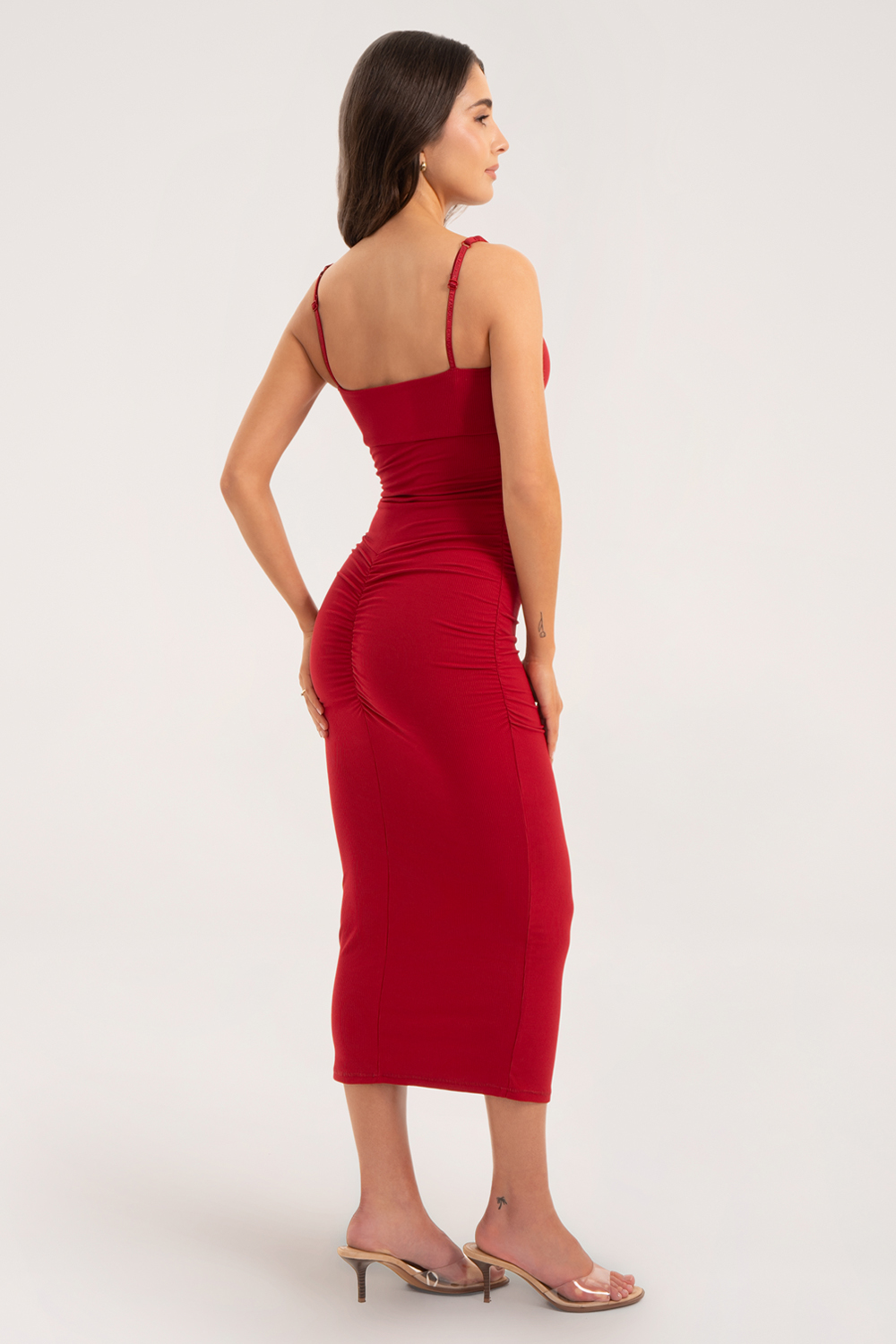 - Midi šaty navržené tak, aby maximálně formovaly postavu a zároveň poskytovaly úplné pohodlí při nošení.
