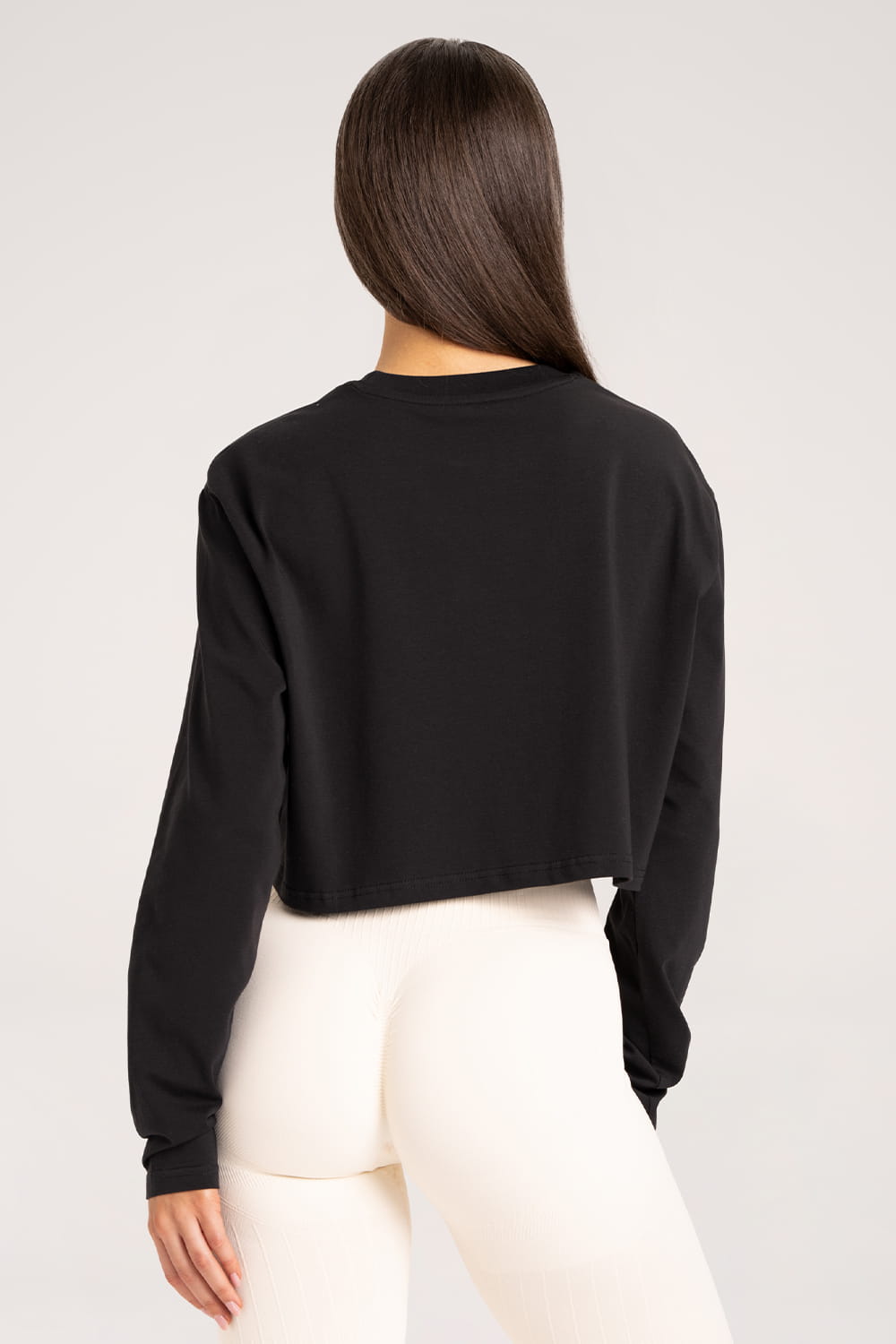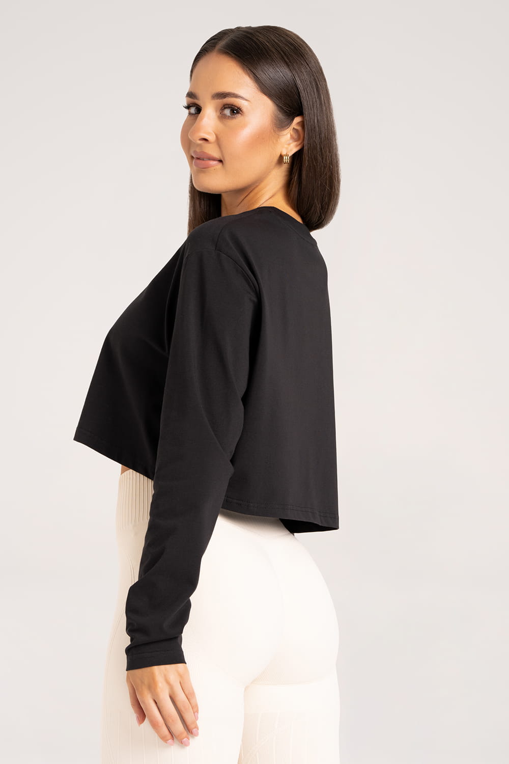 Tričko s dlouhým rukávem a krabicovým střihem se zkrácenou délkou po pas. Vyznačuje se volným, pohodlným střihem a minimalistickým logem umístěným ve středu na hrudi. Dostupné v 7 barvách – ideální volba na trénink i běžné nošení. K dispozici je také verze s krátkým rukávem.